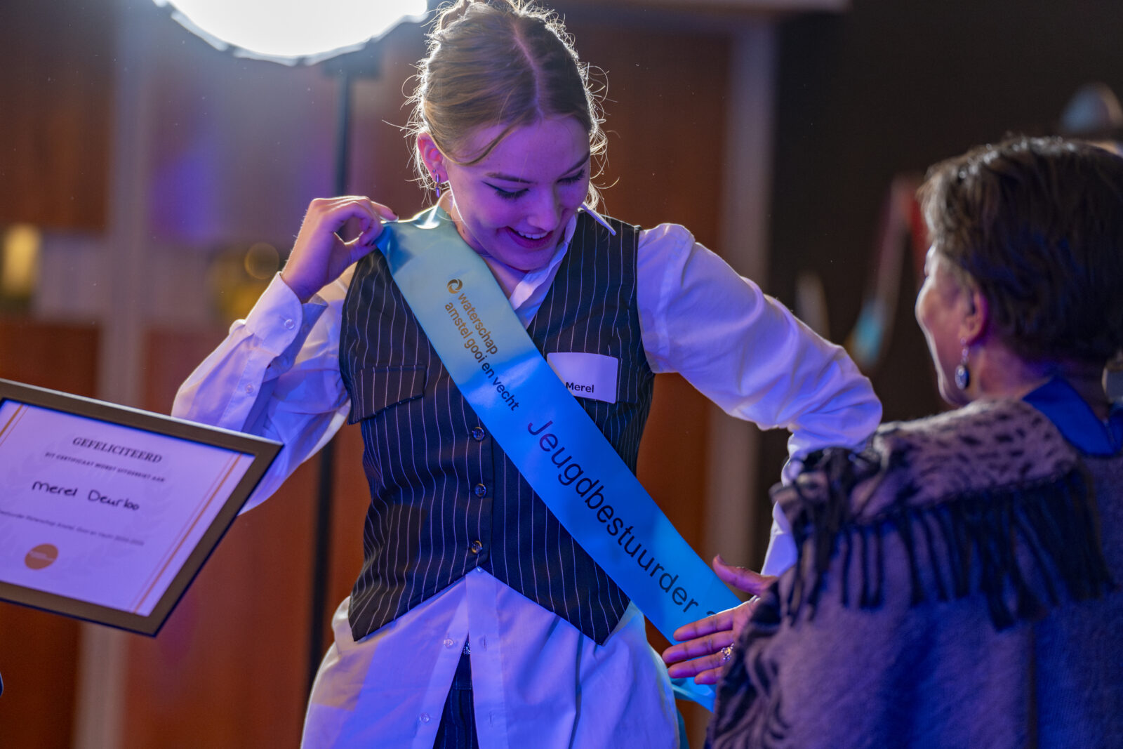 Merel Deurloo (15) uit Amsterdam is de nieuwe jeugdbestuurder van Waterschap Amstel, Gooi en Vecht. Merel was een van de zes kandidaten die tijdens het spannende slotdebat streed om de functie van jeugdbestuurder. Via een Lagerhuisdebat konden de jongeren zich aan het publiek voorstellen, hun ideeën pitchen en met elkaar in debat over water.