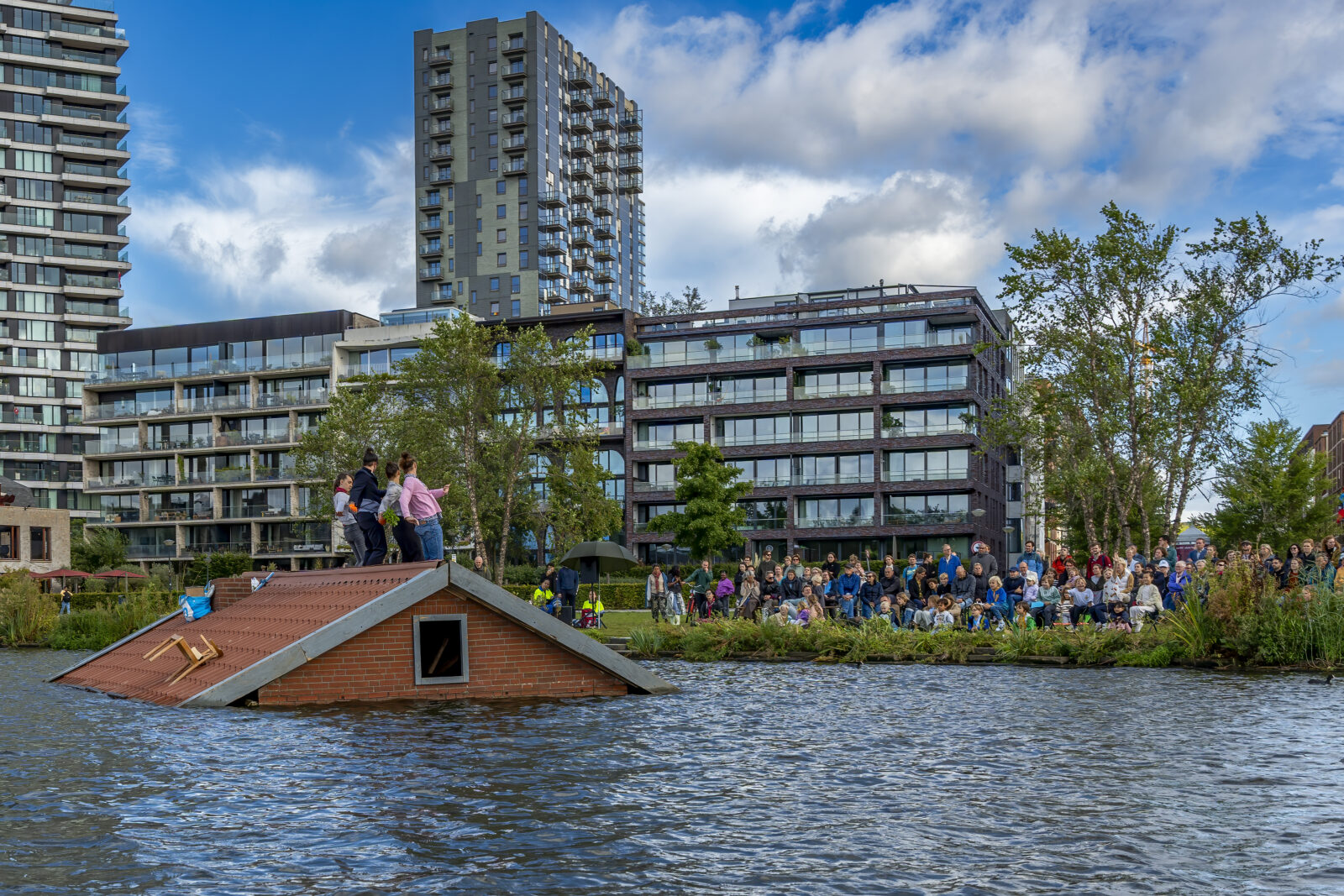 Via dans, muziek en poëzie heeft Waterschap Amstel, Gooi en Vecht jong en oud aan het denken gezet over het thema water. Dansgezelschap Vloeistof speelde de voorstelling Hellend Vlak op een drijvend dak in Amsterdam en Muiden. Dit waren drie goed bezochte voorstellingen en zowel kinderen als ouders hebben genoten.